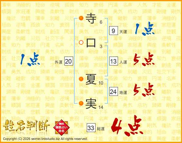 寺口夏実さんの総運は33画の4点!