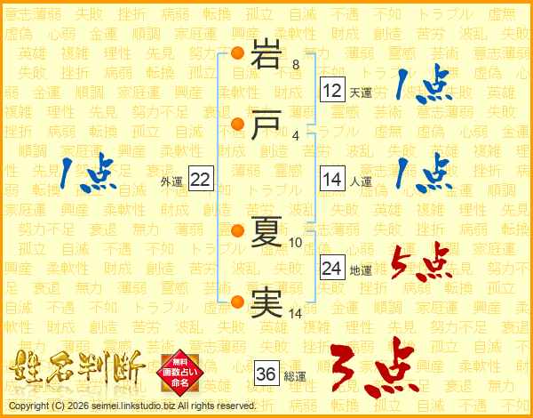 岩戸夏実さんの総運は36画の3点!