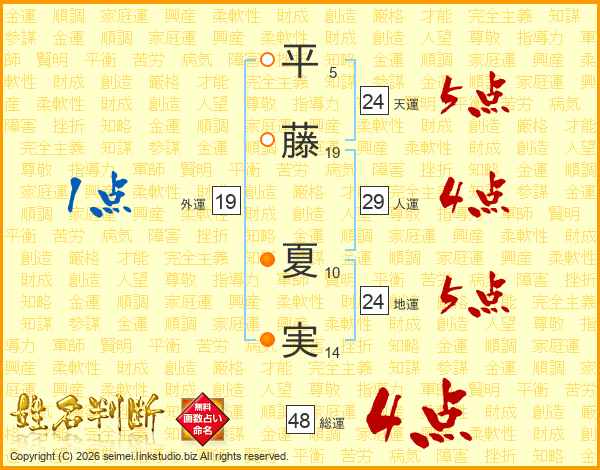 平藤夏実さんの総運は48画の4点!