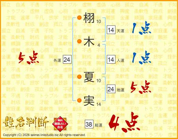 栩木夏実さんの総運は38画の4点!