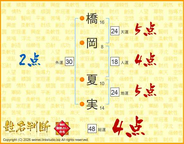橋岡夏実さんの総運は48画の4点!