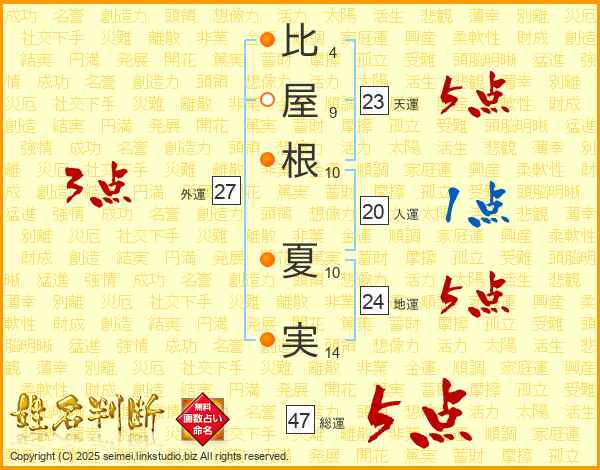 比屋根夏実さんの総運は47画の5点!