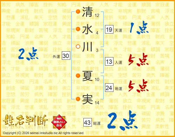 清水川夏実さんの総運は43画の2点!