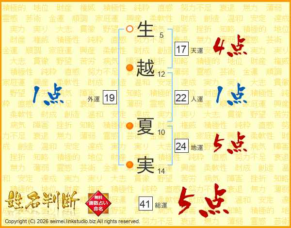 生越夏実さんの総運は41画の5点!
