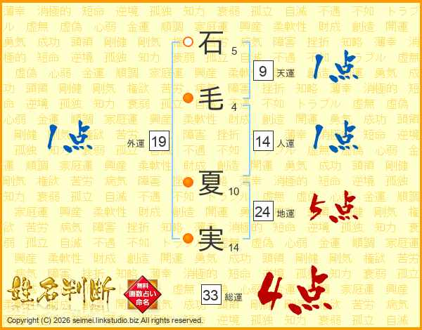 石毛夏実さんの総運は33画の4点!