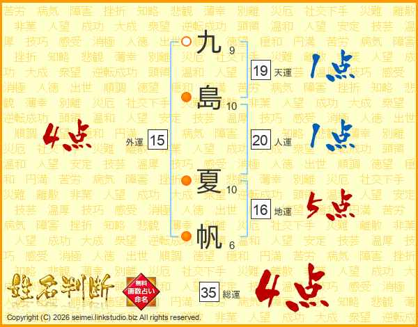 九島夏帆さんの総運は35画の4点!
