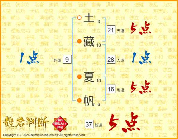 土藏夏帆さんの総運は37画の5点!