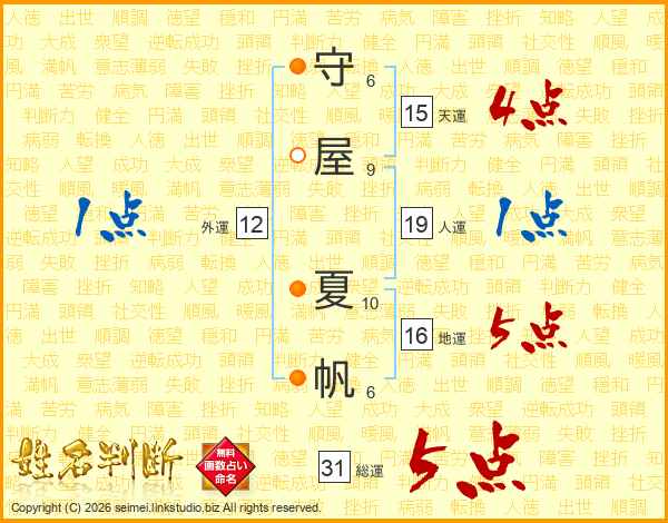 守屋夏帆さんの総運は31画の5点!