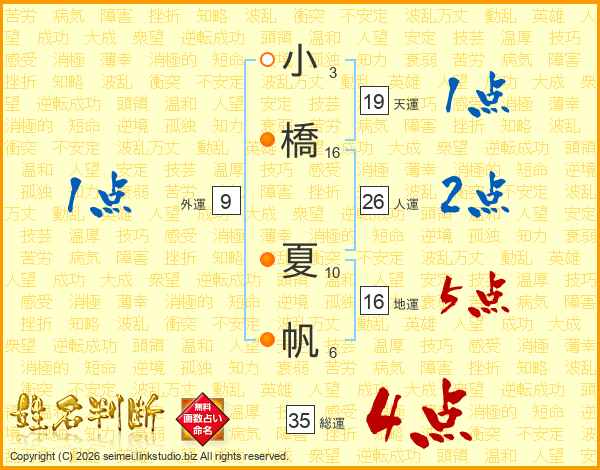 小(3画)橋(16画) 夏(10画)帆(6画)