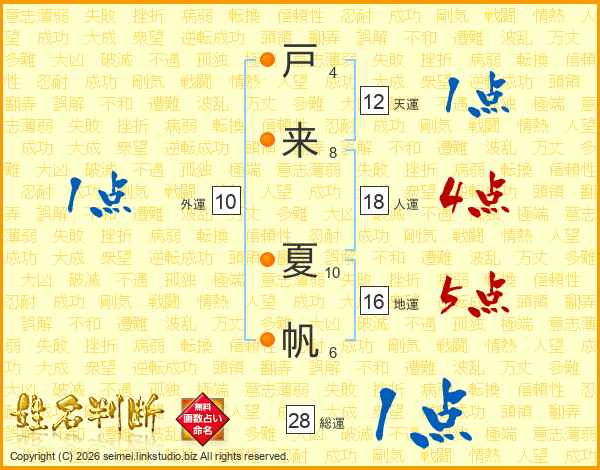 戸来夏帆さんの人運は18画の4点!