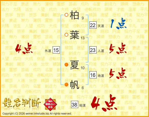 柏葉夏帆さんの総運は38画の4点!