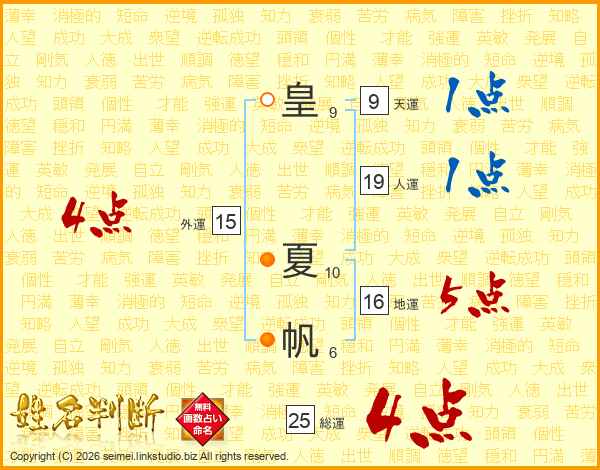 皇夏帆さんの総運は25画の4点!