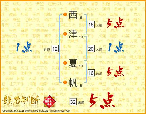 西津夏帆さんの総運は32画の5点!