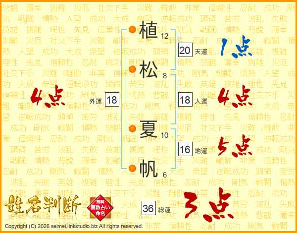 植松夏帆さんの総運は36画の3点!
