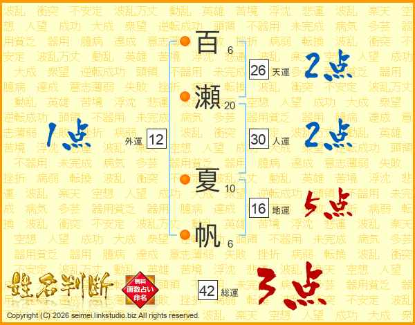 百(6画)瀬(20画)  夏(10画)帆(6画)