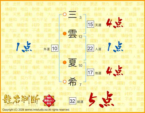 三雲夏希さんの総運は32画の5点!