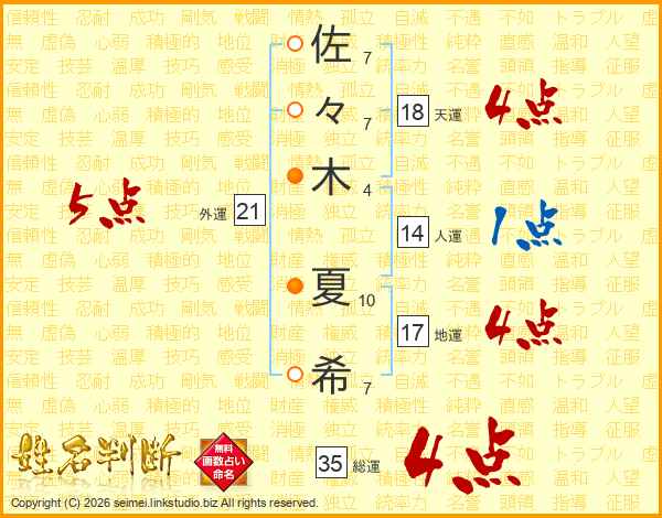 佐(7画)々(7画)木(4画) 夏(10画)希(7画)