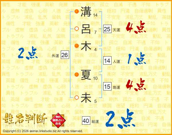 溝呂木夏未さんの天運は25画の4点!