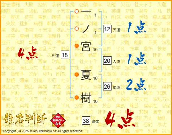 一ノ宮夏樹さんの総運は38画の4点!