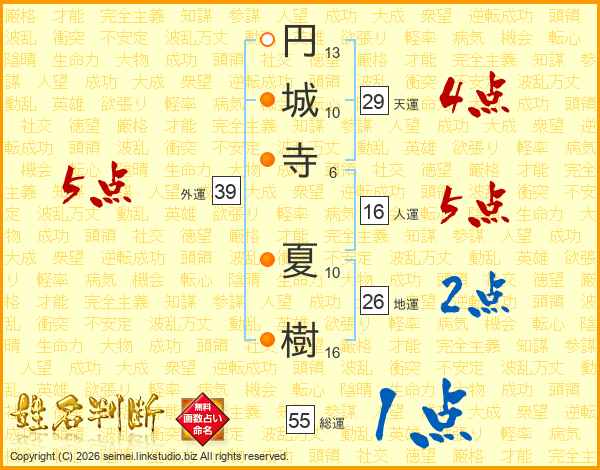 円城寺夏樹さんの総運は55画の1点!