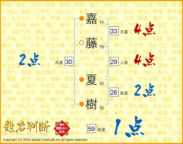 嘉藤夏樹さんの地運は26画の2点!