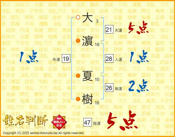 大濵夏樹さんの総運は47画の5点!