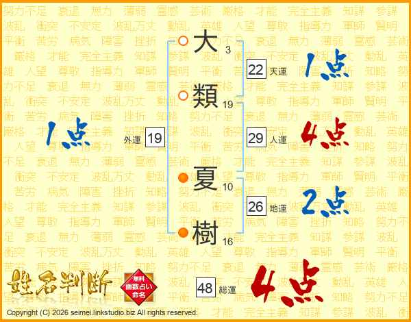 大類夏樹さんの総運は48画の4点!