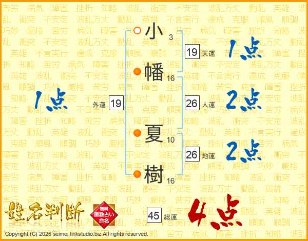 小(3画)幡(16画) 夏(10画)樹(16画)