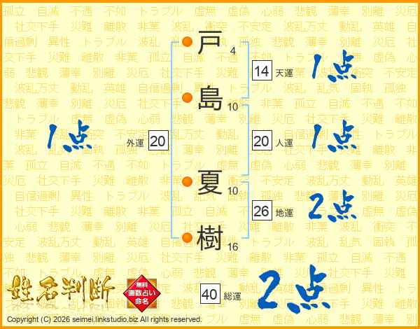 戸島夏樹さんの総運は40画の2点!