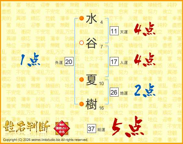 水(4画)谷(7画) 夏(10画)樹(16画)