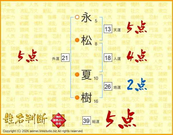永(5画)松(8画) 夏(10画)樹(16画)