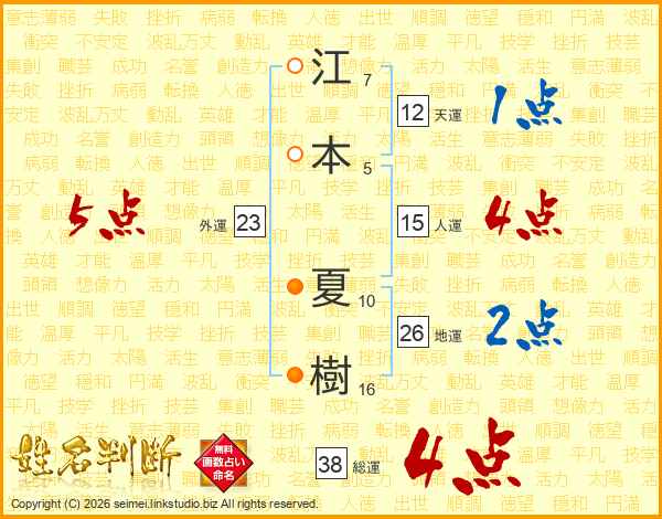 江本夏樹さんの総運は38画の4点!