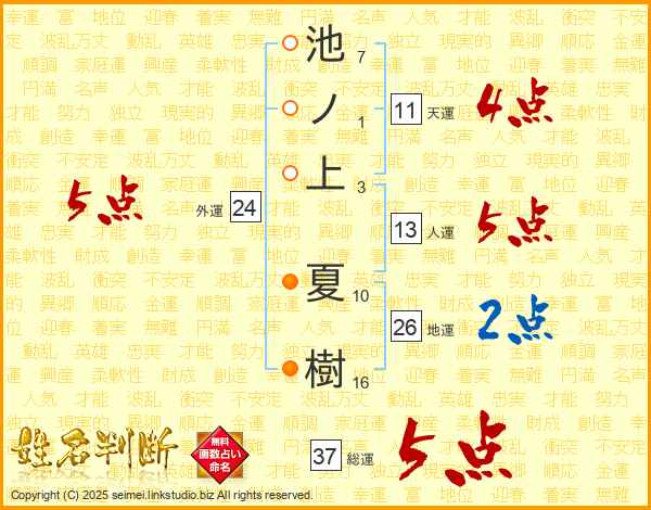 池(7画)ノ(1画)上(3画) 夏(10画)樹(16画)