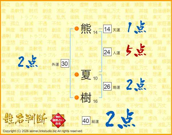 熊夏樹さんの総運は40画の2点!