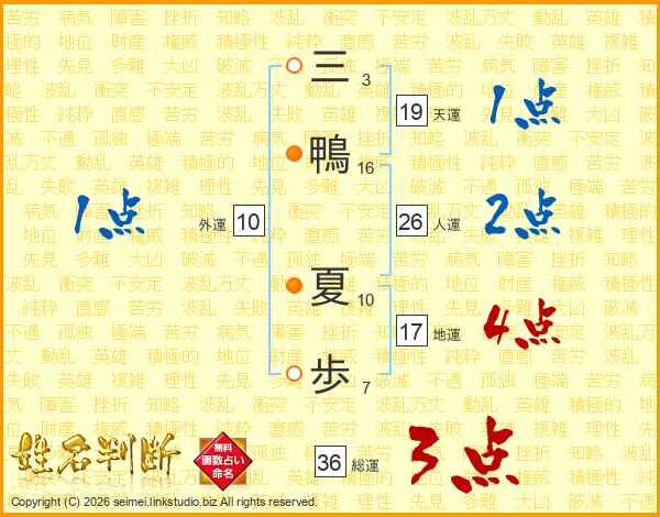 三鴨夏歩さんの人運は26画の2点!