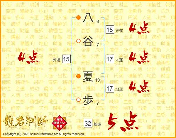 八(8画)谷(7画) 夏(10画)歩(7画)