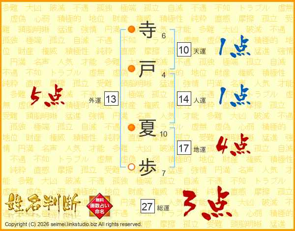 寺戸夏歩さんの天運は10画の1点!