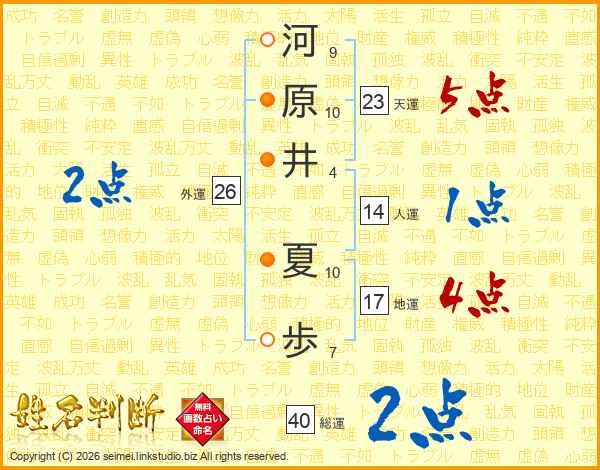 河原井夏歩さんの総運は40画の2点!