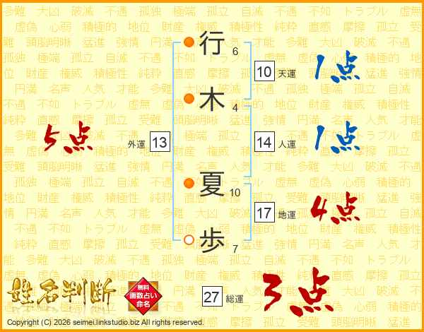 行木夏歩さんの外運は13画の5点!