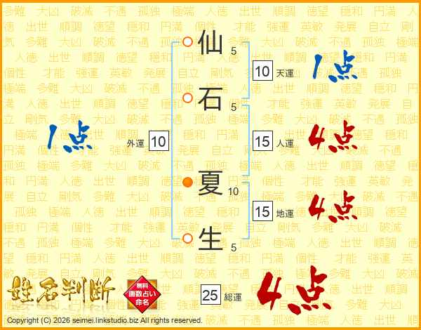 仙石夏生さんの総運は25画の4点!