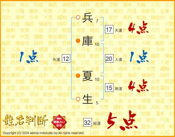 兵庫夏生さんの総運は32画の5点!