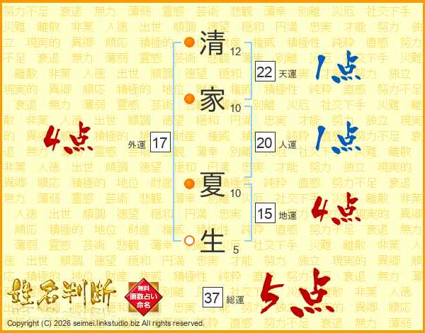 清家夏生さんの総運は37画の5点!