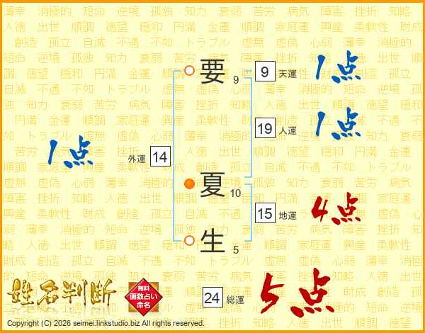 要夏生さんの総運は24画の5点!