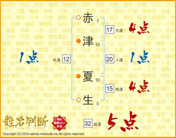 赤(7画)津(10画) 夏(10画)生(5画)