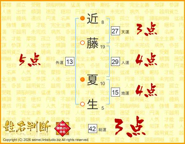 近(8画)藤(19画) 夏(10画)生(5画)