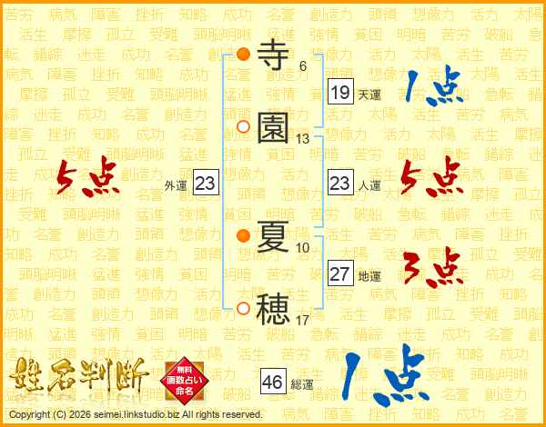 寺園夏穂さんの総運は46画の1点!