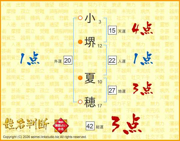 小堺夏穂さんの総運は42画の3点!