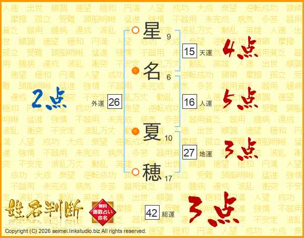 星名夏穂さんの地運は27画の3点!
