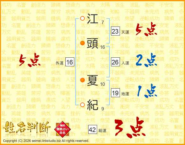 江頭夏紀さんの天運は23画の5点!
