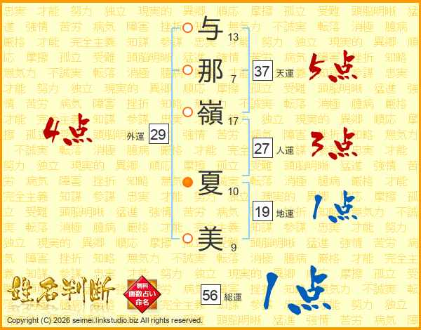 与那嶺夏美さんの総運は56画の1点!